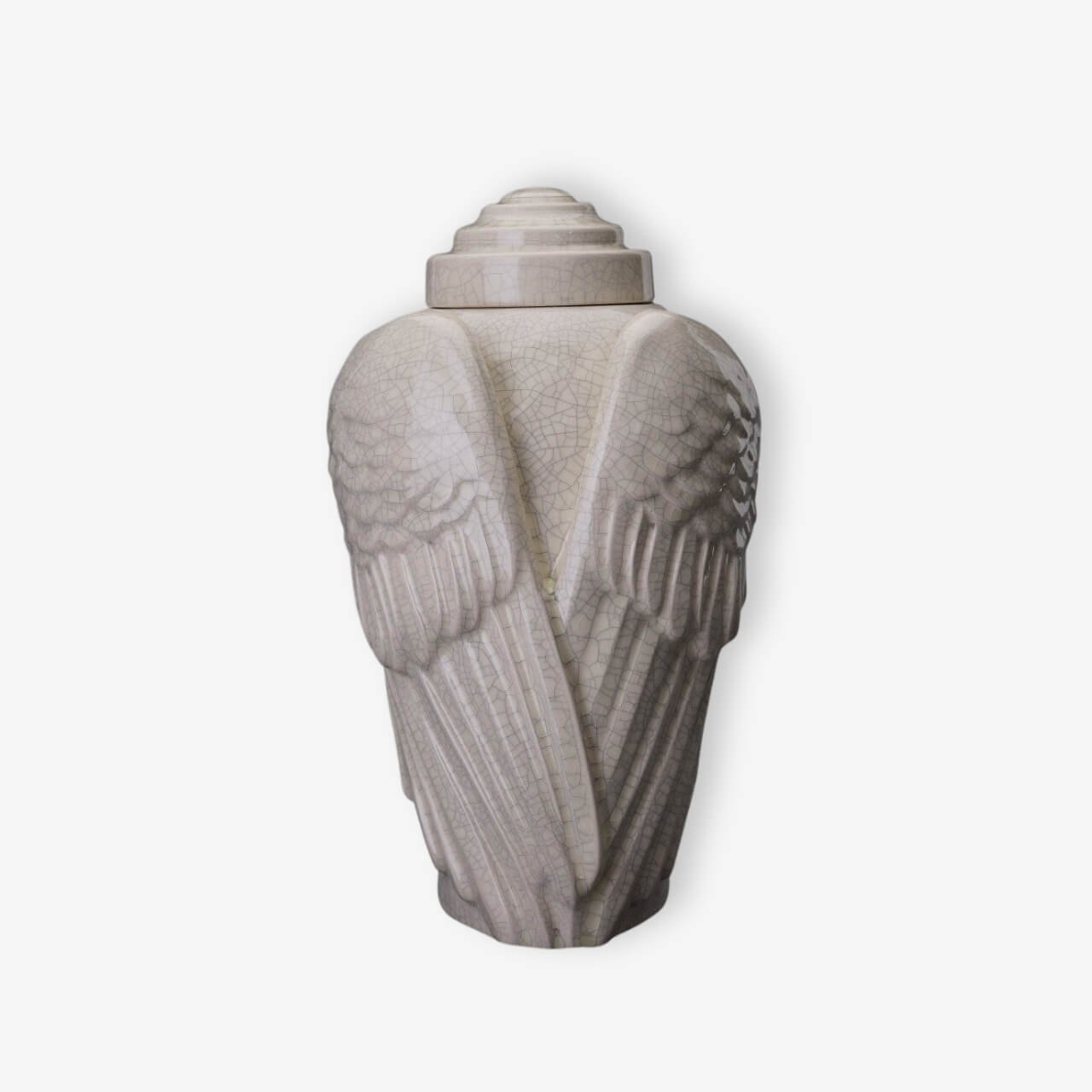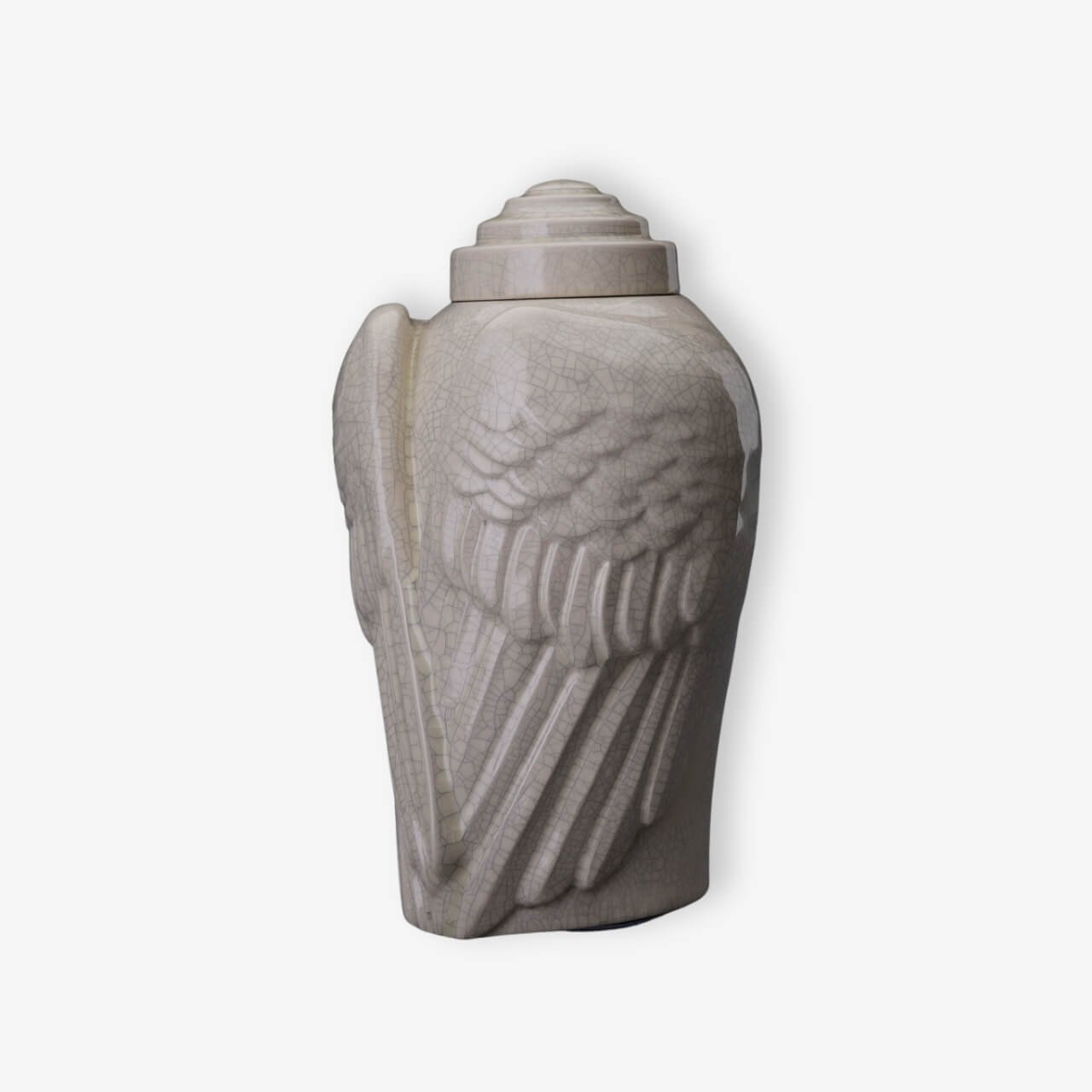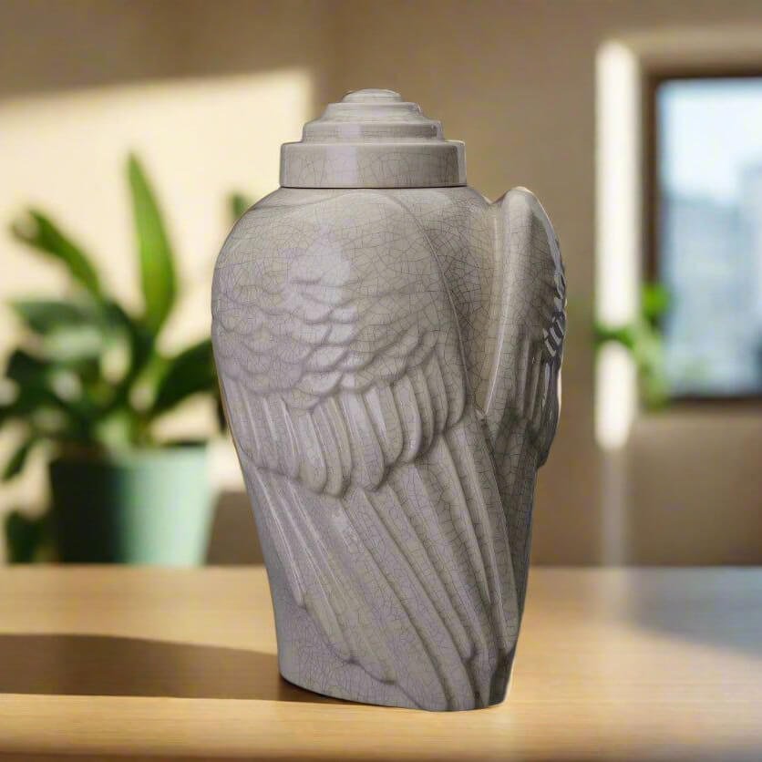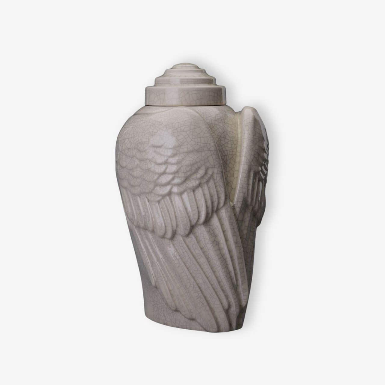 Χειροποίητη κεραμική τεφροδόχος “Wings” Λευκό Κρακελέ